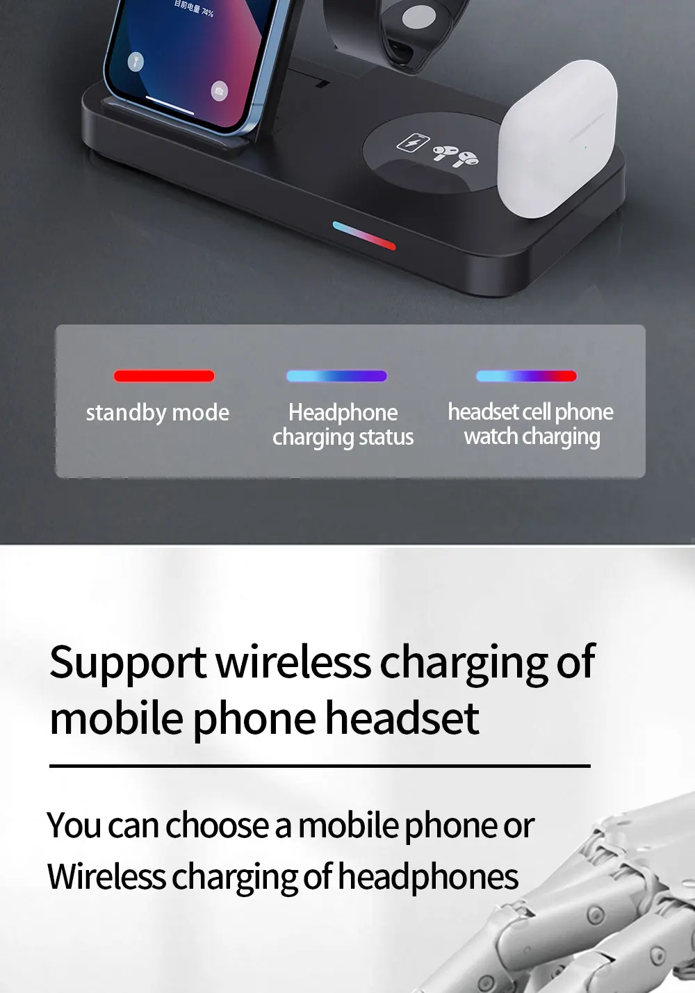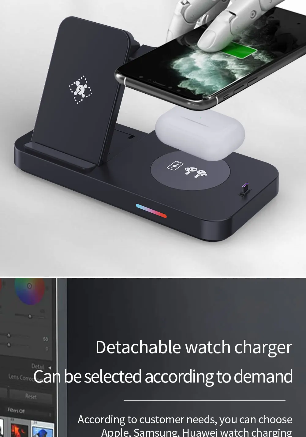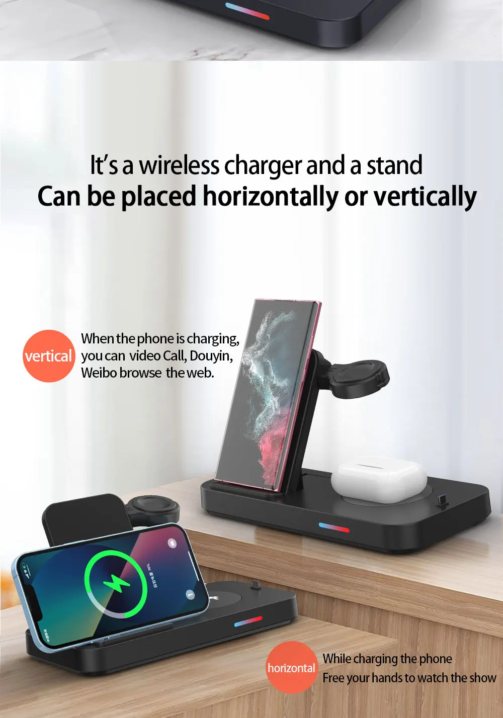 2. محطة شحن لاسلكية يمكن شحن الخاص بك لسامسونج جير S3 ، جير S4 ، ساعة جالاكسي اكتيف ، ساعة جالاكسي اكتيف 2 ، ساعة جالاكسي 3 ، ساعة جالاكسي 4 ، ساعة جالاكسي 5، سماعات سامسونج ، الهواتف في نفس الوقت سامسونج غالاكسي S21/S20/S10 سلسلة وجميع الأجهزة المعتمدة تشى.